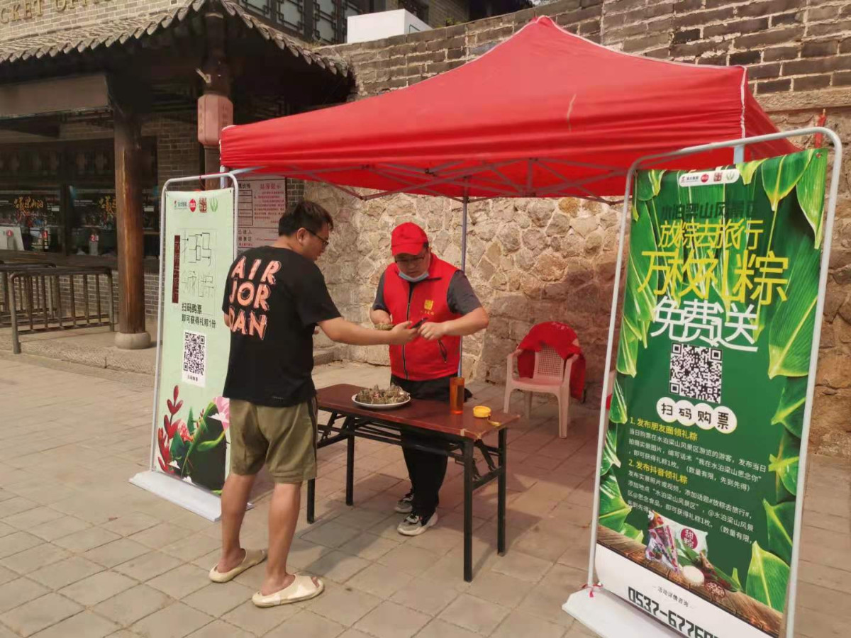 活動(dòng)二:掃碼購(gòu)票領(lǐng)禮粽。凡在濟(jì)寧全域旅游平臺(tái)掃碼購(gòu)水泊梁山景區(qū)線上門票的游客,均可憑購(gòu)票鏈接(截圖、二維碼)等在水泊梁山景區(qū)指定地點(diǎn)領(lǐng)取粽子1只,發(fā)完為止。