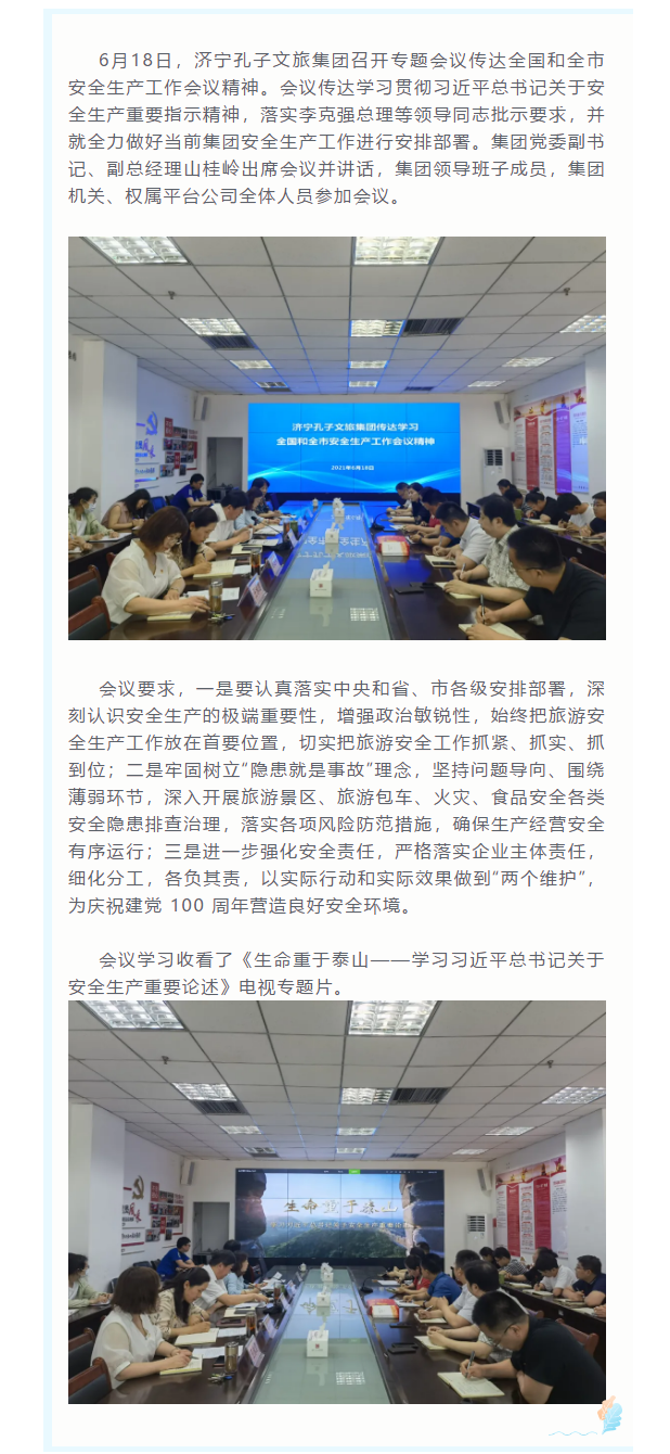 濟(jì)寧孔子文旅集團(tuán)傳達(dá)學(xué)習(xí)全國和全市安全生產(chǎn)工作會議精神