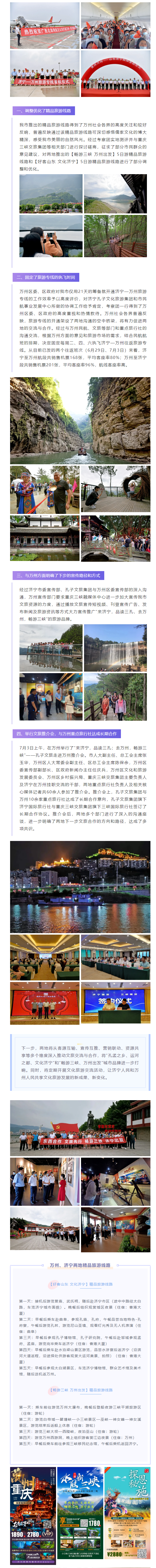 為加強魯渝東西部合作,促進濟寧市和萬州區(qū)文化旅游深度交流融合和高質(zhì)量發(fā)展,濟寧—萬州旅游專線于6月29日正式開通。由市委常委、宣傳部長任慶虎和市人大副主任、總工會主席張玉華帶隊,濟寧孔子文旅集團及權(quán)屬三孔、兩孟、梁山、太白湖、嘉祥等景區(qū)的負(fù)責(zé)人,重點旅行社負(fù)責(zé)人及相關(guān)核心媒體記者組成的濟寧文旅考察交流推介團乘坐首航的旅游專線航班赴萬州區(qū),實地考察測評萬州旅游線路,宣傳推介我市的文旅資源。考察團一行通過召開專場推介會等宣傳活動,進一步打響了“來濟寧,品讀三孔,去萬州,暢游三峽”的旅游品牌。考察取得的成果如下: