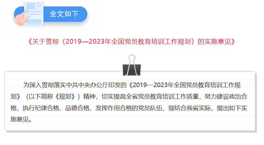 省委辦公廳印發(fā)《關(guān)于貫徹〈2019—2023年全國黨員教育培訓工作規(guī)劃〉的實施意見》