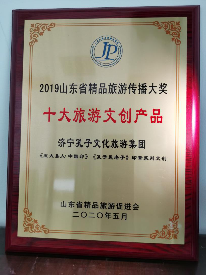 近日,由山東省文化和旅游廳指導(dǎo),山東省精品旅游促進(jìn)會(huì)主辦的“2019山東省精品旅游傳播大獎(jiǎng)評(píng)選”結(jié)果出爐,孔子文旅集團(tuán)以弘揚(yáng)中國(guó)優(yōu)秀傳統(tǒng)文化為宗旨,通過(guò)傳統(tǒng)工藝與當(dāng)代設(shè)計(jì)的結(jié)合,創(chuàng)作出的《五大圣人·中國(guó)印》系列、《孔子見(jiàn)老子》漆畫(huà)文創(chuàng)商品,榮獲山東省精品旅游傳播大獎(jiǎng)——十大旅游文創(chuàng)產(chǎn)品獎(jiǎng)。