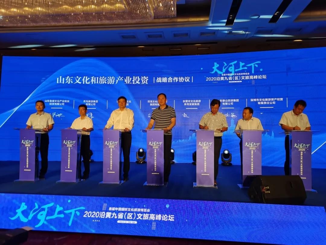 作為首屆中國國際文旅博覽會系列活動之一,本次論壇以共建共商共享為理念,搭建沿黃九?。▍^(qū))合作共享的文化展示、旅游宣傳、產業(yè)合作、對話交流、投融資平臺。沿黃九?。▍^(qū))11家大型文旅企業(yè)集團和山東省內文旅企業(yè)的代表以及文旅專家出席。與會嘉賓以黃河為紐帶,共話沿黃文旅發(fā)展新時代。30余家單位在論壇簽署合作協(xié)議,意向投資金額達130億元,并成立了山東文化和旅游產業(yè)聯(lián)盟。