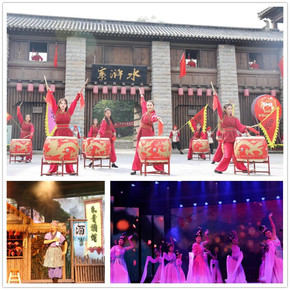 節(jié)日期間景區(qū)演藝節(jié)目豐富。上午九點(diǎn),在水滸寨門(mén)即梁山一關(guān)廣場(chǎng)上演大型演藝節(jié)目《好漢迎賓》。大型水滸舞臺(tái)劇《忠義梁山泊》在景區(qū)水滸劇場(chǎng)隆重上演,這也是大劇在定妝之后面向社會(huì)的首次公映。本劇由導(dǎo)演張忠安執(zhí)導(dǎo),香港著名導(dǎo)演劉嘉靖擔(dān)任藝術(shù)總監(jiān),經(jīng)過(guò)前期的科學(xué)籌劃以及中期的細(xì)致打磨,整臺(tái)劇目代表了魯西南地區(qū)文化演藝水平的較高水準(zhǔn),呈現(xiàn)出華麗的舞臺(tái)特效。高要求、高標(biāo)準(zhǔn)、高起點(diǎn)帶來(lái)的是較高的觀賞效果和較高的評(píng)價(jià),自大劇推出以來(lái),受到廣大游客的一致好評(píng),稱其代表了水滸文化的較高演藝水平。來(lái)到梁山景區(qū),游覽美景的同時(shí),欣賞大劇感受水滸文化逐漸成為當(dāng)下主流的游覽方式。