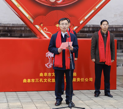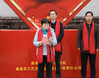 今天,我們在三孔景區(qū)隆重舉行“孔府過大年”系列活動,讓游客一起體驗孔府的年俗活動,利用傳統(tǒng)民俗活動這個舞臺,進一步推進“孔府過大年”活動成長為傳播孔子文化、惠及社會大眾的知名文化品牌,為中國傳統(tǒng)文化傳承做出新的更大貢獻!