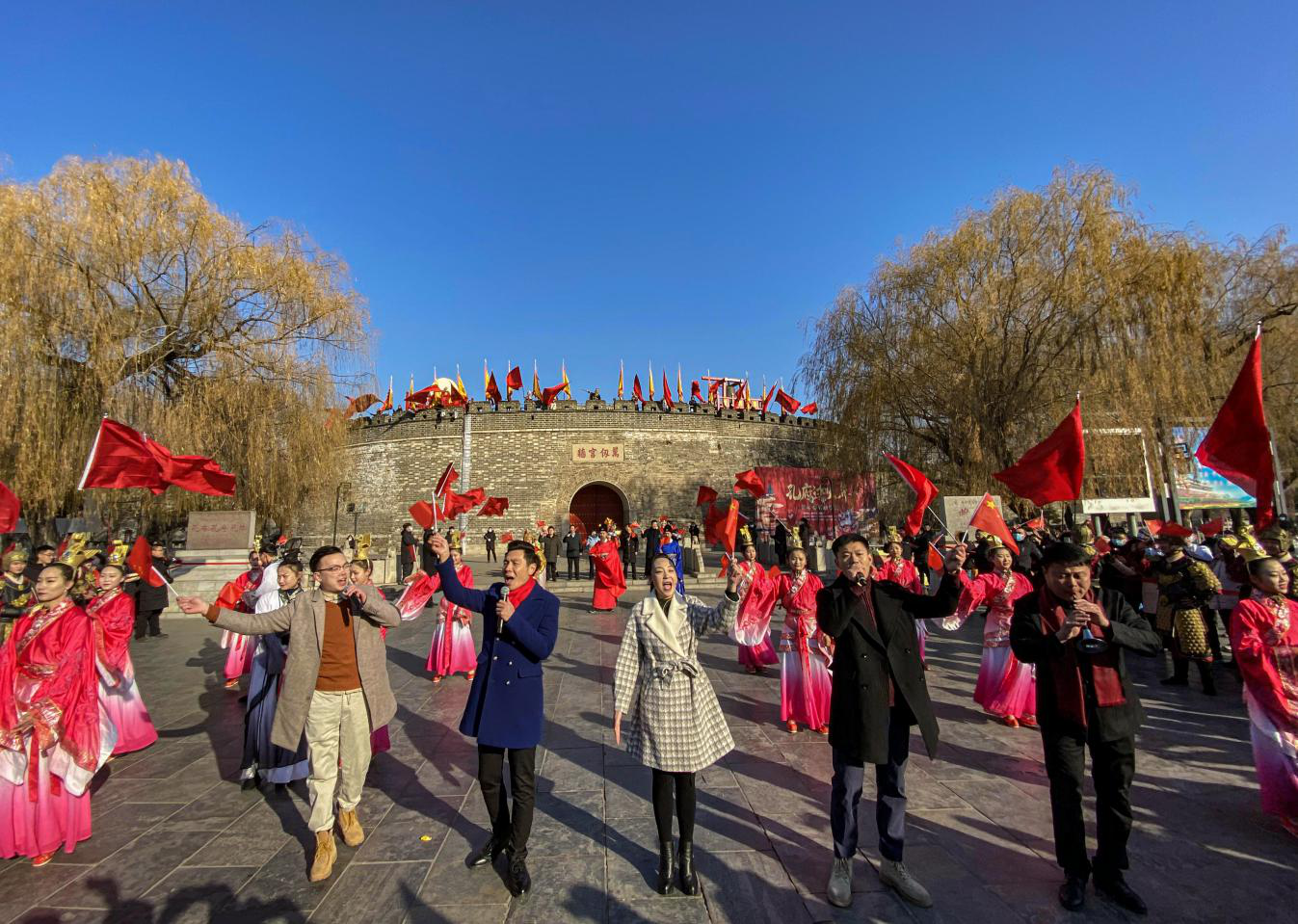 在不絕于耳的掌聲中,福、祿、壽三星降臨,向游客送上送春的祝福,并與小萌娃現(xiàn)場互動,火紅的大旗擺起來,歡快的紅歌唱起來,為紀念中國人民共產(chǎn)黨建黨100周年,曲阜三孔景區(qū)用紅歌“快閃”的方式向偉大祖國獻禮,《大中國》、《唱支山歌給黨聽》紅歌串燒輪番上演,數(shù)十面紅色大旗出現(xiàn)在萬仞宮墻上迎風搖擺,現(xiàn)場觀眾揮舞手中的國旗,共同唱出對黨、對祖國最真摯的祝福,嘹亮的歌聲將啟動儀式推向高潮,大家紛紛拿出手機記錄下這難忘的時刻。