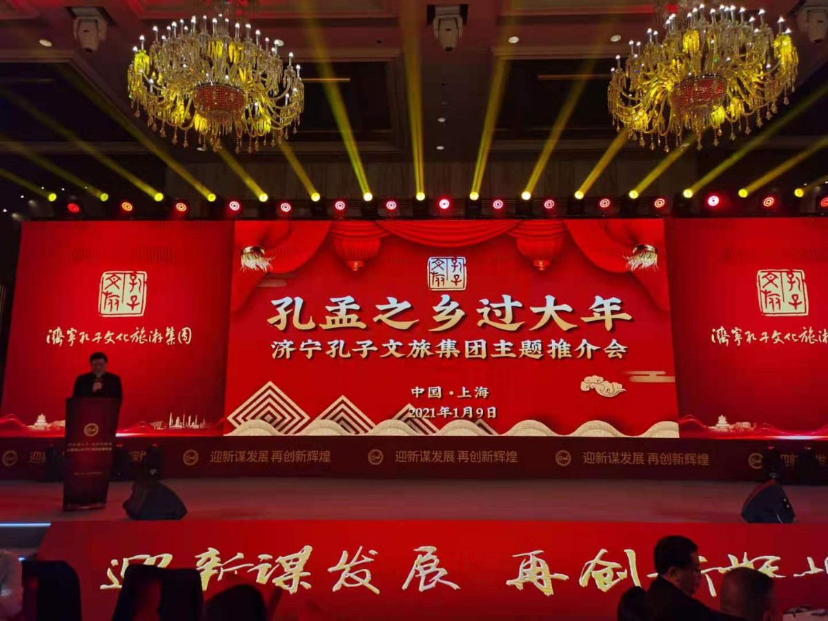 2021年1月9日,由上海市濟寧商會和濟寧孔子文化旅游集團等單位聯(lián)合主辦的“孔孟之鄉(xiāng)過大年”——孔子文旅走進上海主題推介活動在上海星河灣酒店舉行。山東省人民政府駐上海辦事處黨委書記、主任穆長順、濟寧市人大常委會副主任陳國華、濟寧市投資促進局等相關(guān)部門、上海市有關(guān)部門領(lǐng)導、上海市濟寧籍企業(yè)家、旅游界及社會各界相關(guān)人士出席本次推介活動。