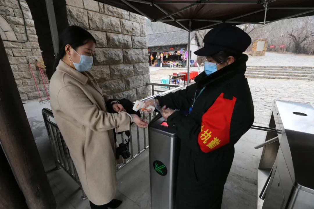 景區(qū)嚴(yán)格落實上級領(lǐng)導(dǎo)部門的安全防疫要求,在景區(qū)入口處派專人疏散密集人群、查看健康碼,口罩佩帶、禁止火種帶入景區(qū)等工作。