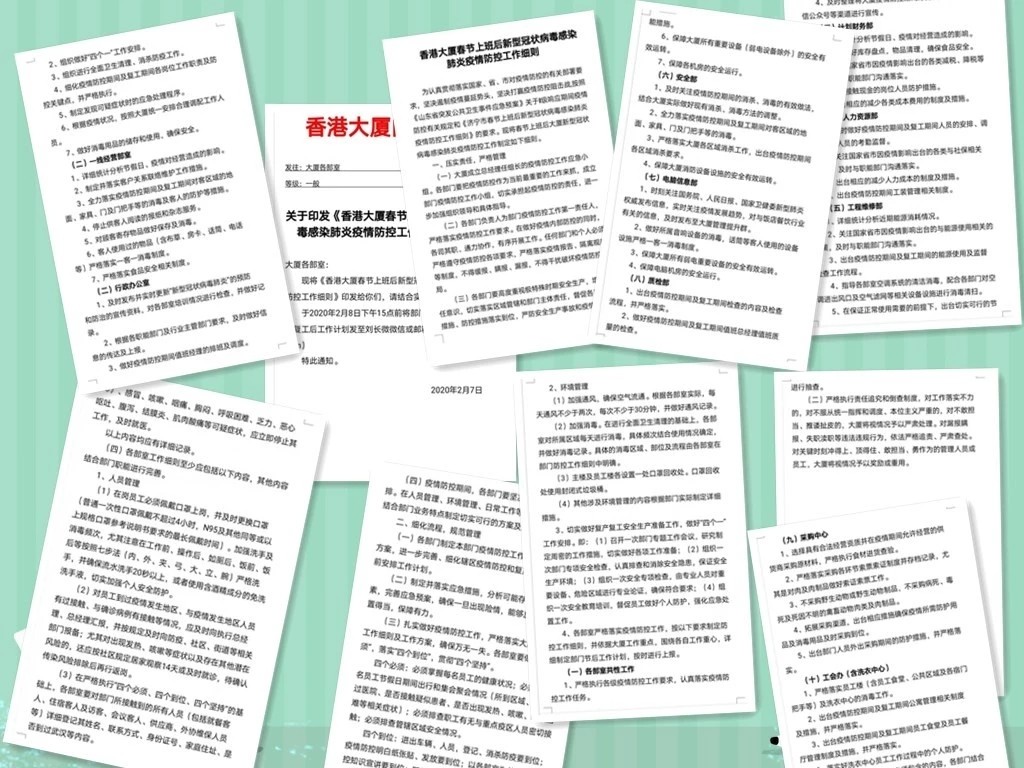 四是加強(qiáng)宣傳引導(dǎo),消除恐慌心理。通過微信群、QQ群及時轉(zhuǎn)載中央、省、市關(guān)于防控工作的決策部署和情況通報(bào)。在大堂電子顯示屏上輪播新型冠狀病毒肺炎預(yù)防和防治宣傳專題片,介紹健康防控知識,提高防控意識。另外,大廈中高層管理人員通過語音視頻等形式召開會議,加強(qiáng)工作調(diào)度,提升學(xué)習(xí)能力。