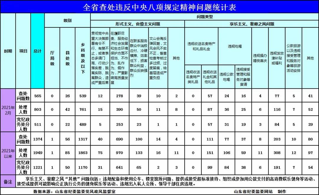 2021年2月全省查處違反中央八項(xiàng)規(guī)定精神問題565起
