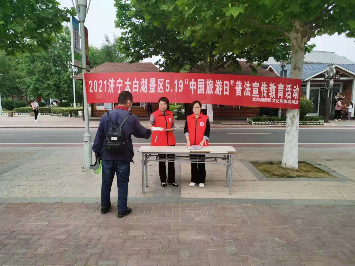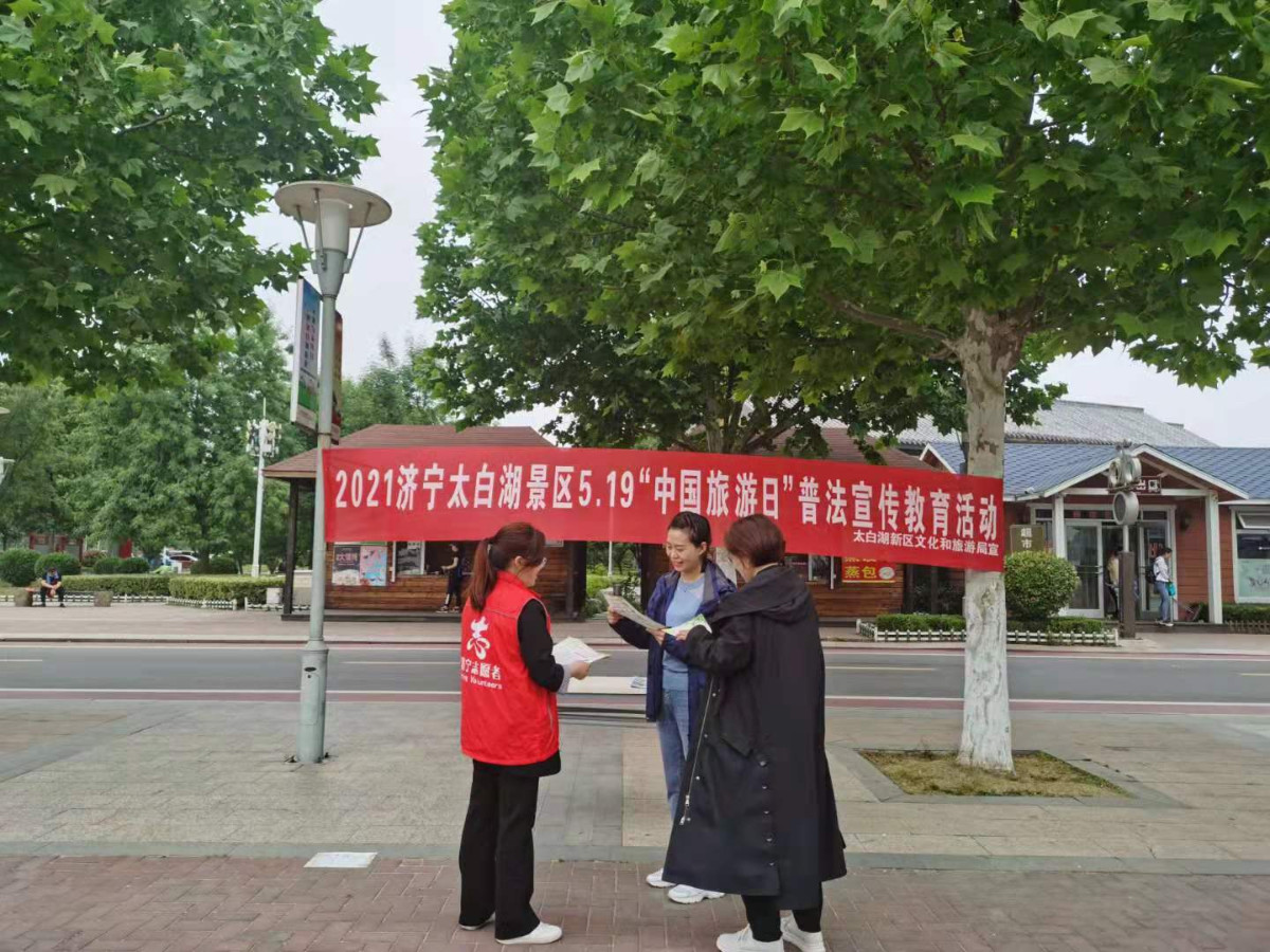 2021年5月19日是第十一個(gè)“中國(guó)旅游日”,濟(jì)寧孔子文旅集團(tuán)北湖文化旅游有限公司在太白湖景區(qū)組織開(kāi)展以“綠色發(fā)展 美好生活”為主題的5·19“中國(guó)旅游日”普法宣傳活動(dòng),引導(dǎo)群眾文明旅游,健康出行,增強(qiáng)法治觀(guān)念,樹(shù)立文明旅游新風(fēng)尚。