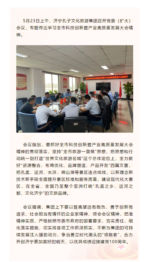 孔子文旅集團(tuán)傳達(dá)學(xué)習(xí)全市科技創(chuàng)新暨產(chǎn)業(yè)高質(zhì)量發(fā)展大會(huì)精神